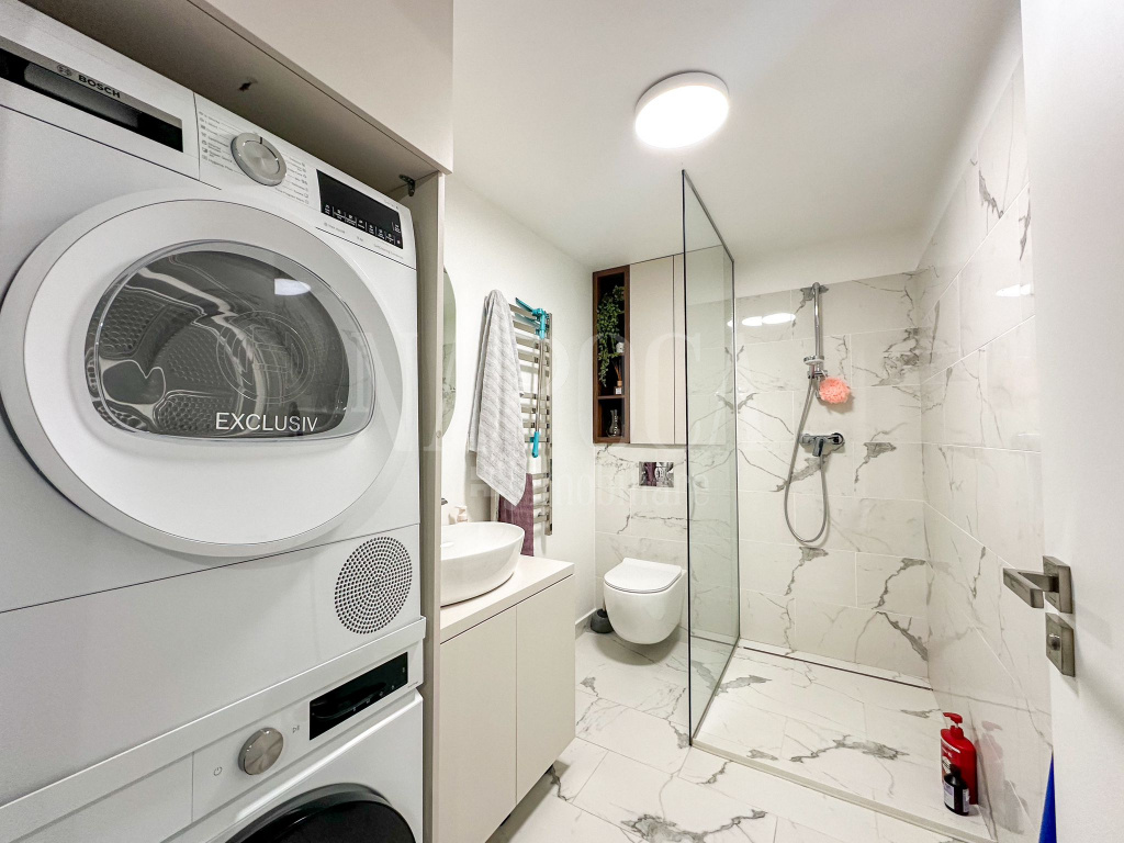 Apartamentul se preda finisat cu: pardoseala din parchet laminat, gresie si faianta, pereti cu vopsea lavabila alba, usi interioare din lemn, usa intrare metalica, ferestre termoizolante din PVC cu 3 sticle, centrala ultramoderna de bloc, incalzire in pardoseala, internet prin fibra optica, prize si intrerupatoare, cu baile complet echipate, terase cu decking, HPL sau sticla securizata.
