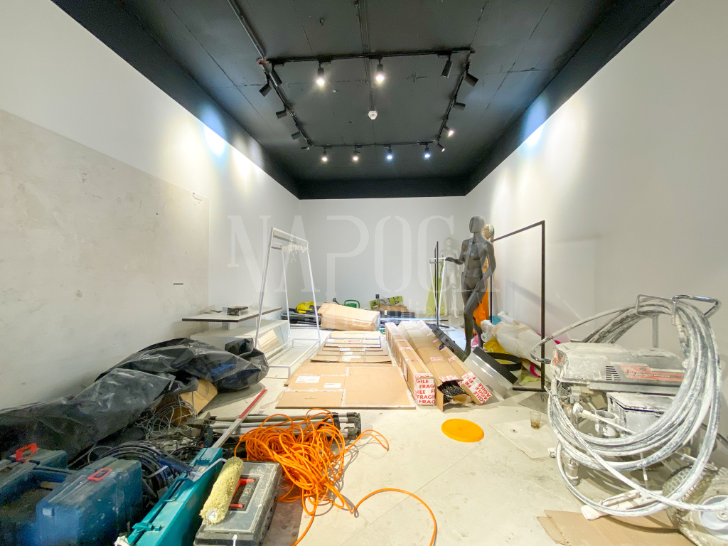Proprietatea este compartimentata atfel: 1 incapere open space, 1 spatiu de depozitare, 2 grupuri sanitare, 1 zona pentru cabine de proba. De asemenea, spatiul are vitrina la strada si se poate recompartimenta in functie de afacerea care va rula in spatiu.