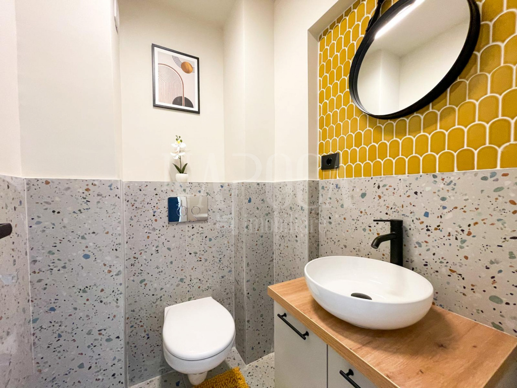 Designul elegant, simplist si primitor este conturat de finisajele de inalta calitate, dintre care amintim gresie si faianta moderna, parchet laminat, mobilier de bucatarie realizat pe comanda, electrocasnice incastrate in garantie, corpuri de iluminat LED, smart TV, gata de mutare imediata!