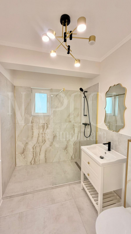 Locuinta se vinde mobilata si utilata, conform fotografiilor, avand un design elegant si primitor, cu materiale de inalta calitate, dintre care amintim: parchet laminat, gresie si faianta moderna, mobilier de bucatarie realizat pe comanda, electrocasnice moderne incastrate in garantie!
