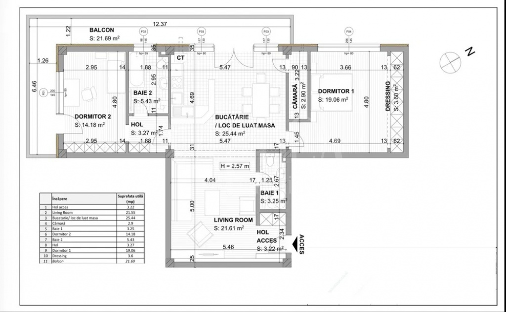 3 camere 2 bai 101 m2 utili Etaj 2/3