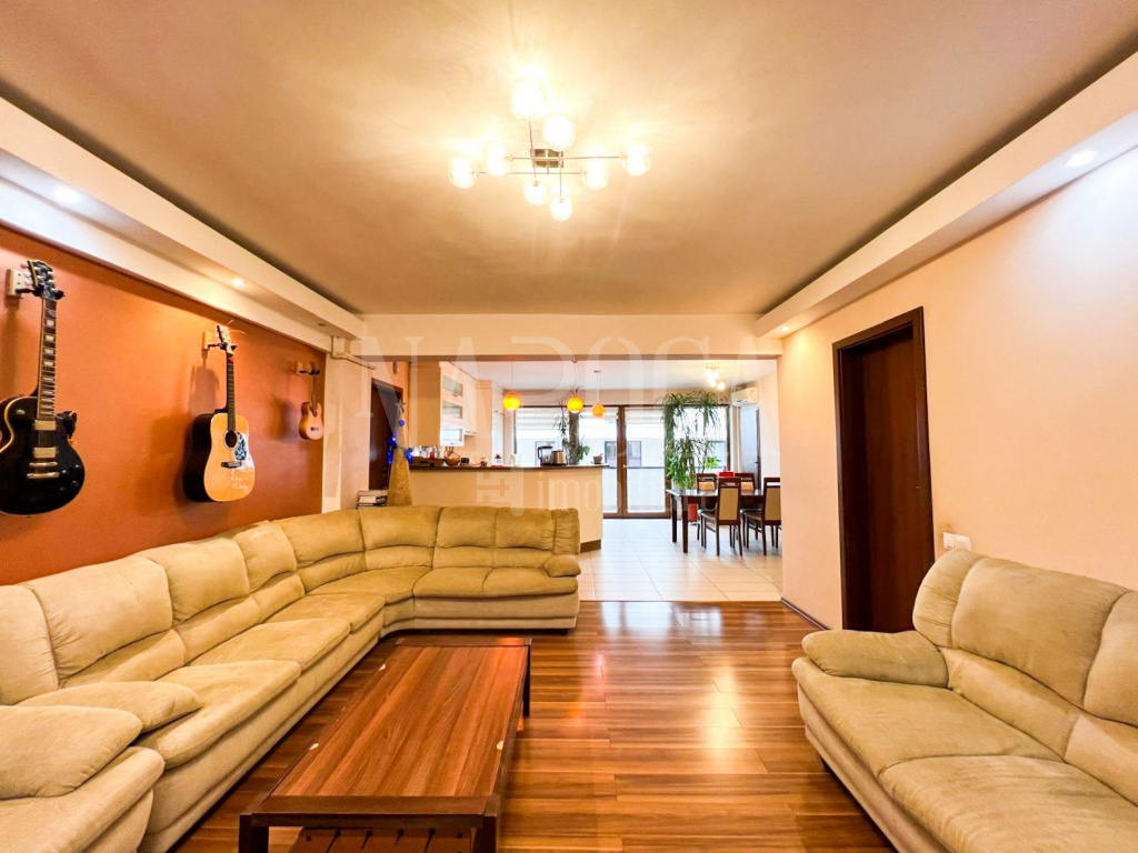 Apartamentul are o suprafata de 101 mp, fiind compartimentat astfel: