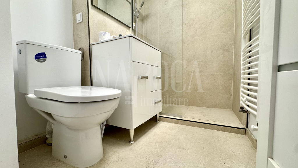 - baie placata cu gresie si faianta moderna.