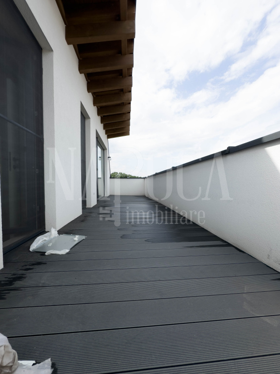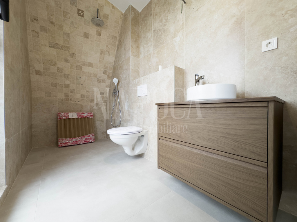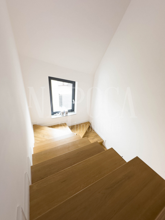 - Mansarda: Un dormitor separat, dotat cu baie si balcon propriu, oferind intimitate si versatilitate, putand fi utilizat ca dormitor pentru oaspeti, birou sau spatiu de relaxare.