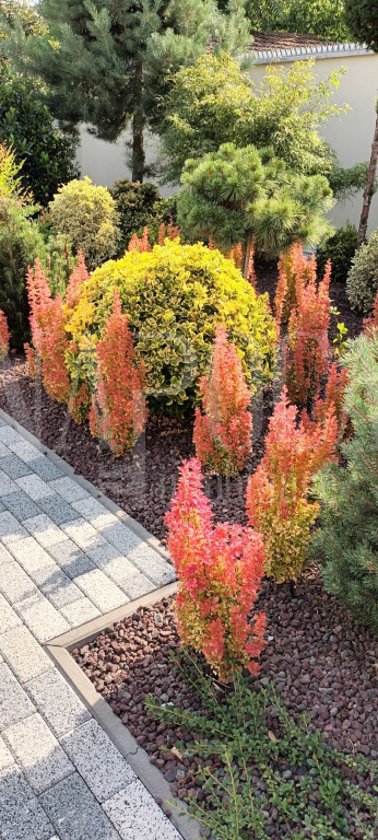 Terenul cu suprafata de 624 mp este amenajat cu arbusti ornamentali,plante perene si, loc de relaxare.