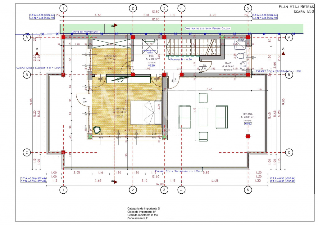 - Etaj retras: o camera suplimentara (ideala pentru dormitor sau hobby room) si o terasa generoasa de 70 mp.