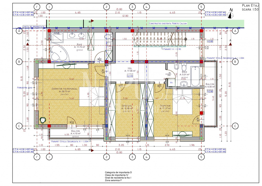 - Etaj: 2 dormitoare deservite de o baie si un dormitor matrimonial cu baie proprie.
