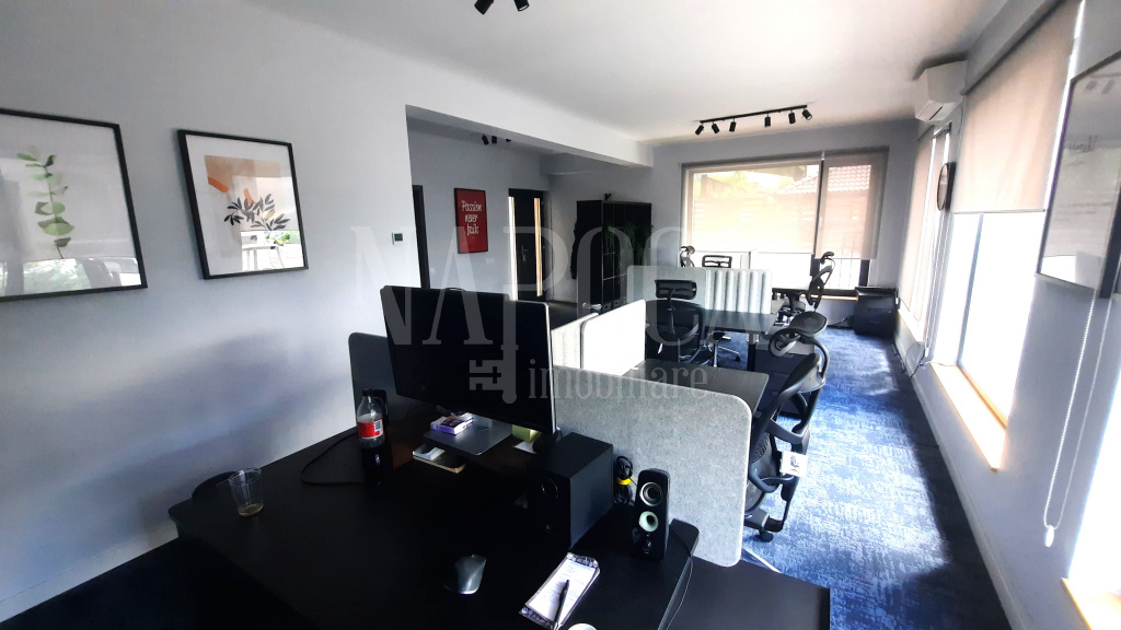 Parter: open space cu living si bucatarie, amenajat in prezent ca spatiu de birou.